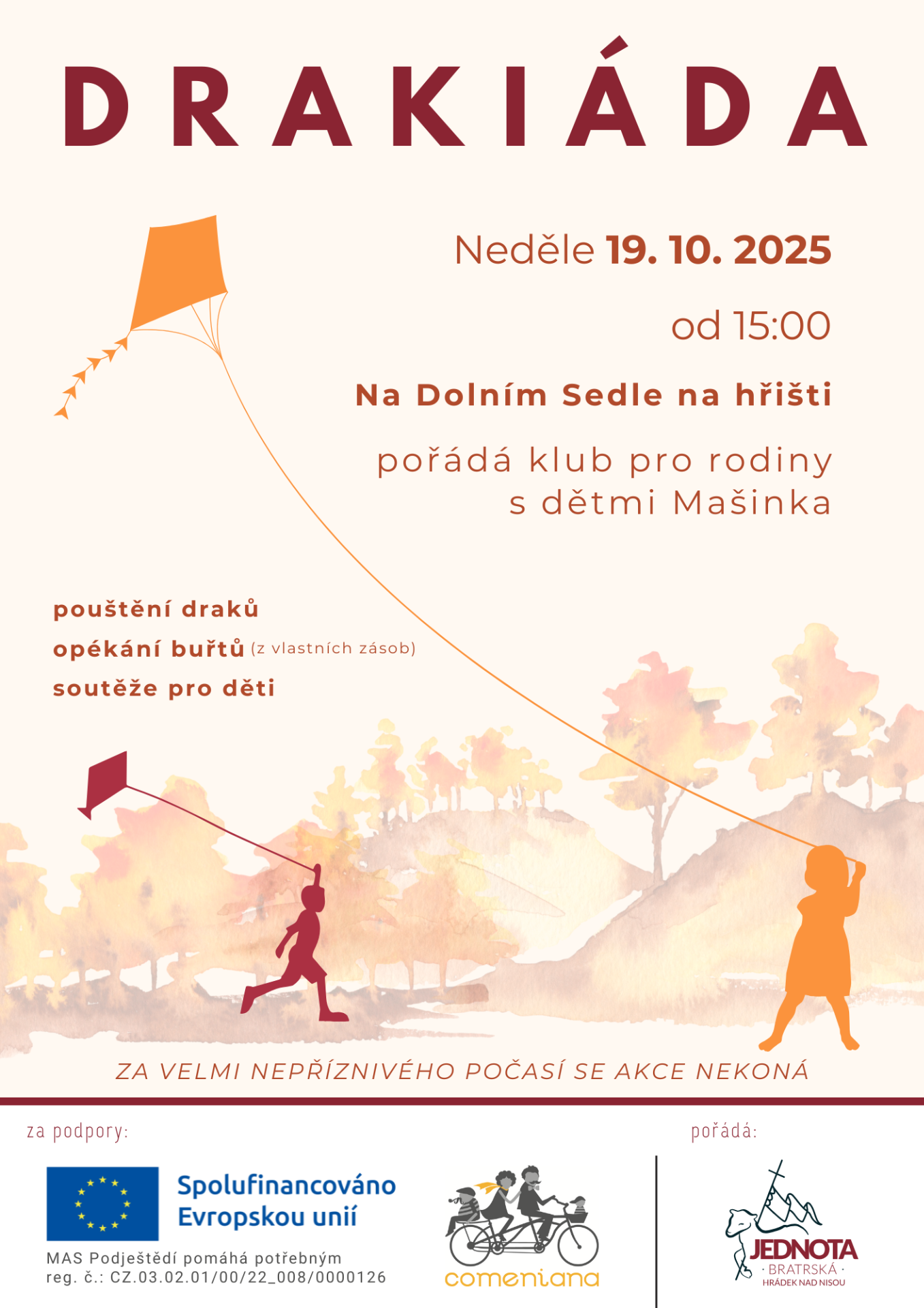 opět po roce vás zveme na tradiční Drakiádu, která se uskuteční v neděli 19. 10. na hřišti na Dolním Sedle.